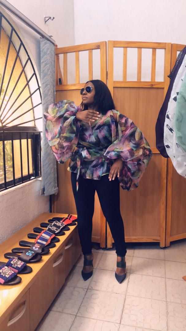 This a sheer versatile wrap blouse that can transition from day to night look.It has an extra large billowy sleeves that makes it stand out as a gorgeous statement piece.You can rock it a pair of pantsĀ or a pencil skirt.